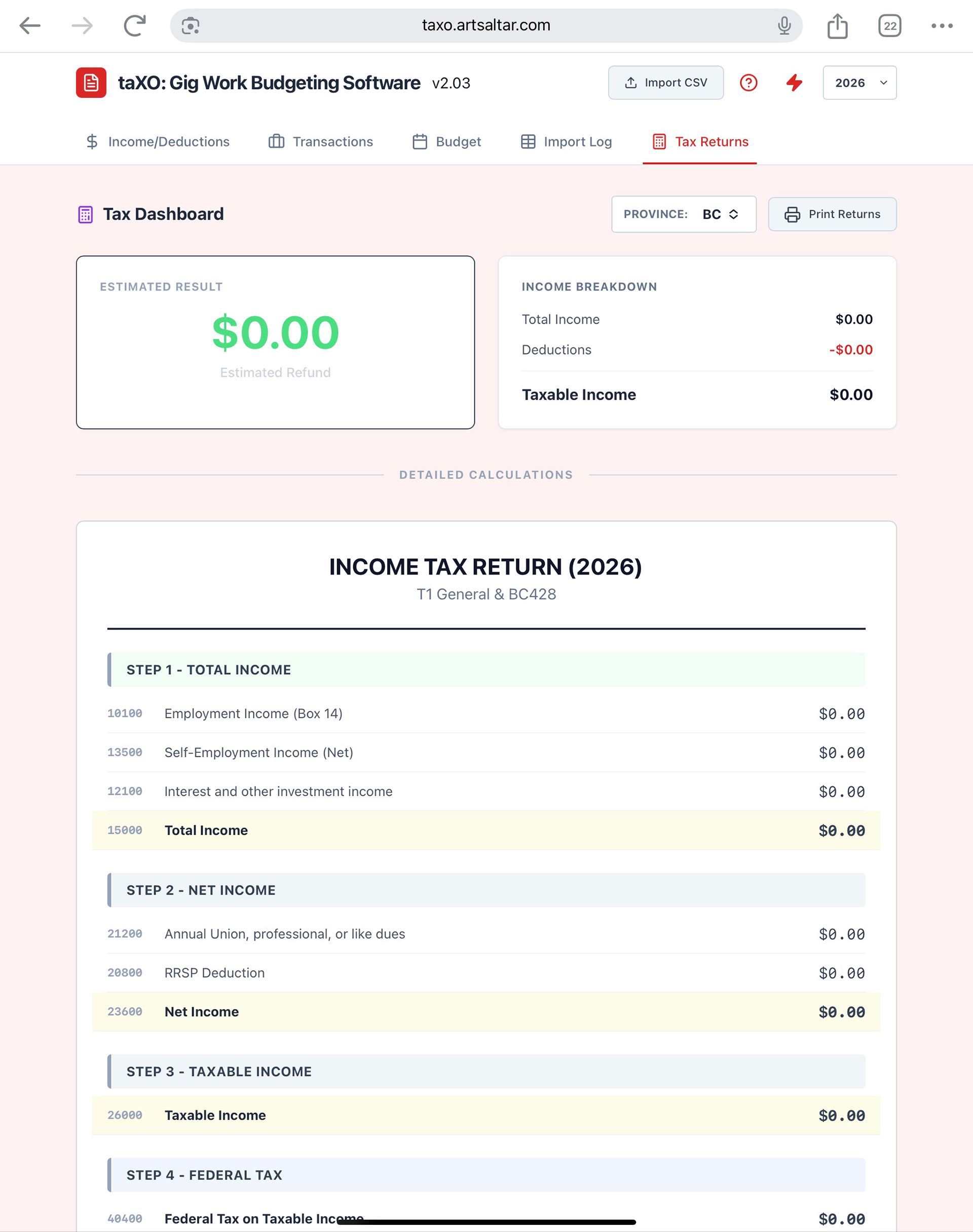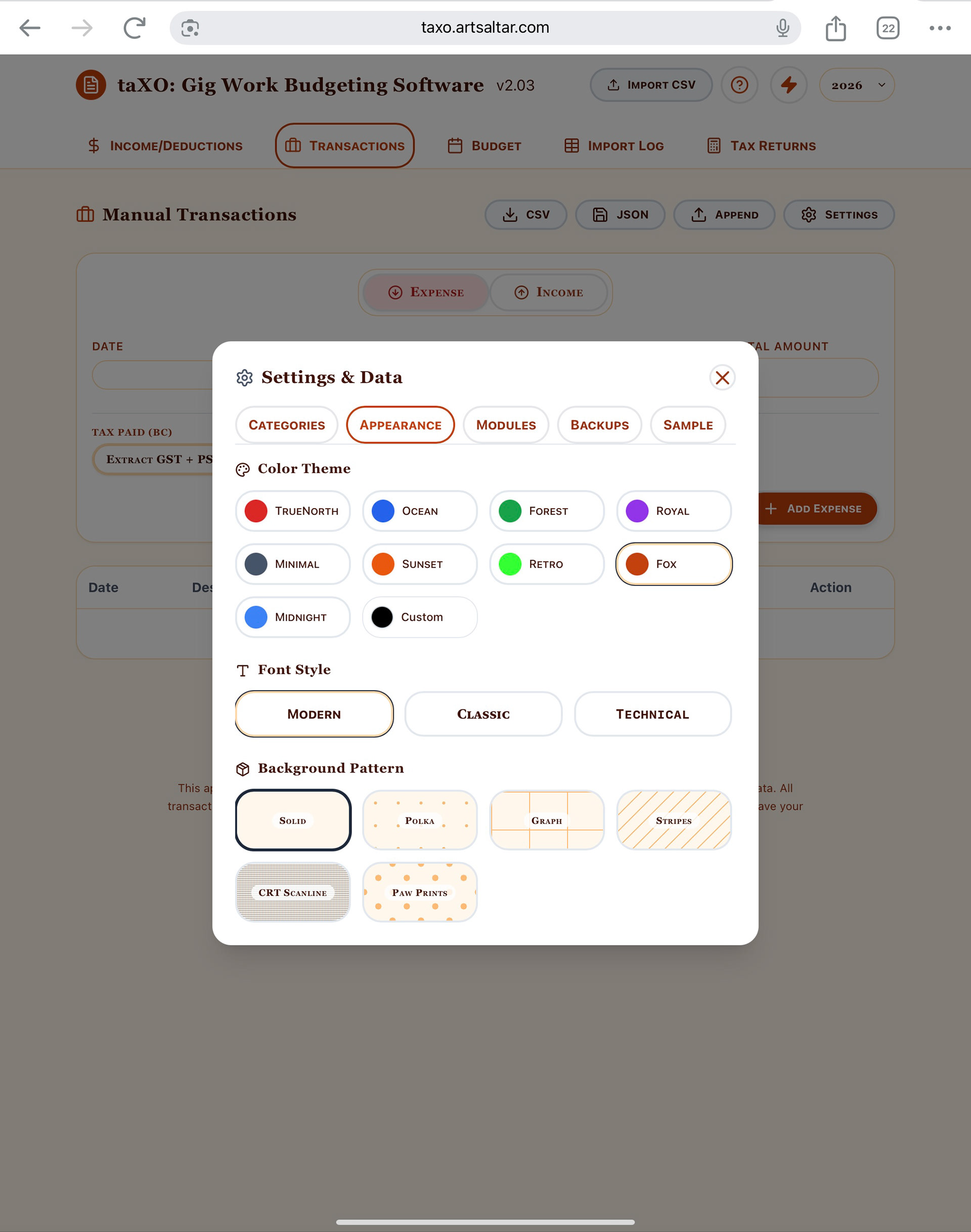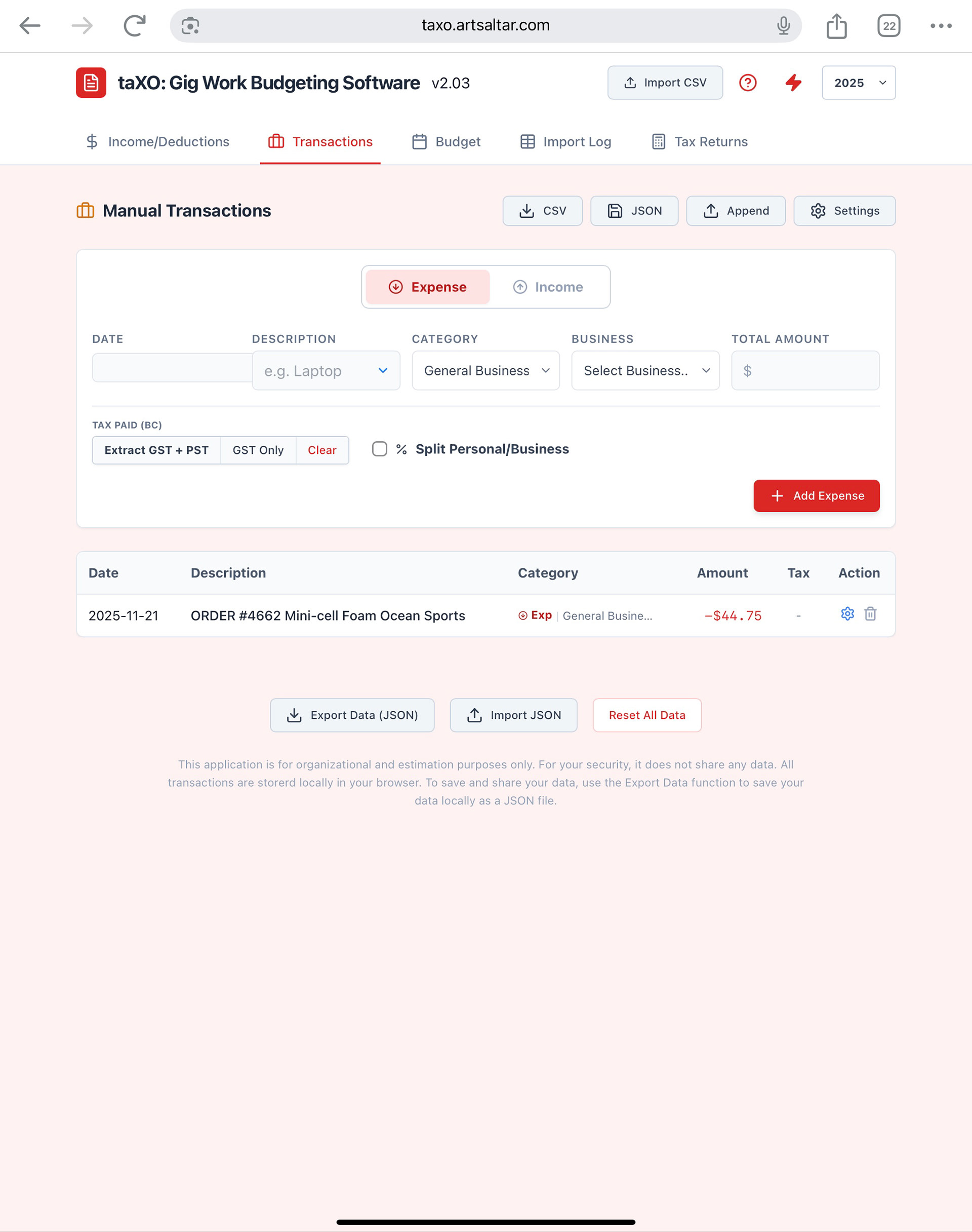 TaXO: A non-profit web-based Budgeting tool for Gig Workers